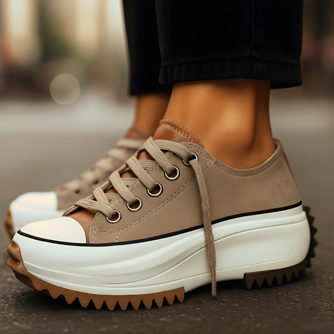Stop letting improper shoe alignment sabotage your body! The Arianne Platform Wedge Shoes feature a supportive cushioned orthopedic insole and shock-absorbing platform sole, engineered to provide elevated comfort and realign your body from the ground up. Enjoy a balanced blend of polished minimalism and sporty function that you can easily pair with any casual look, finally delivering the posture correction and joint support you desire.
